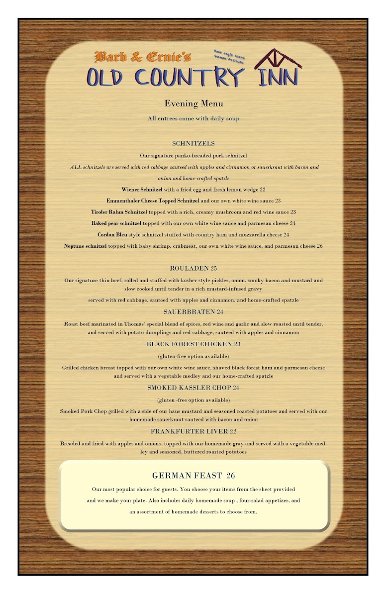 Welcome to Barb & Ernie's Old Country Inn, a beloved brunch spot located in Edmonton, Alberta. Known for its generous portions and comforting dishes, the menu offers a delightful range of breakfast specialties that cater to every palate. One standout is the Christmas Morning French Toast, elegantly served with whipped cream and a mixed berry topping, priced at CA$19.95. For those seeking something savory, the German Bacon Pancakes come highly recommended, showcasing unique flavors that will leave you craving more.